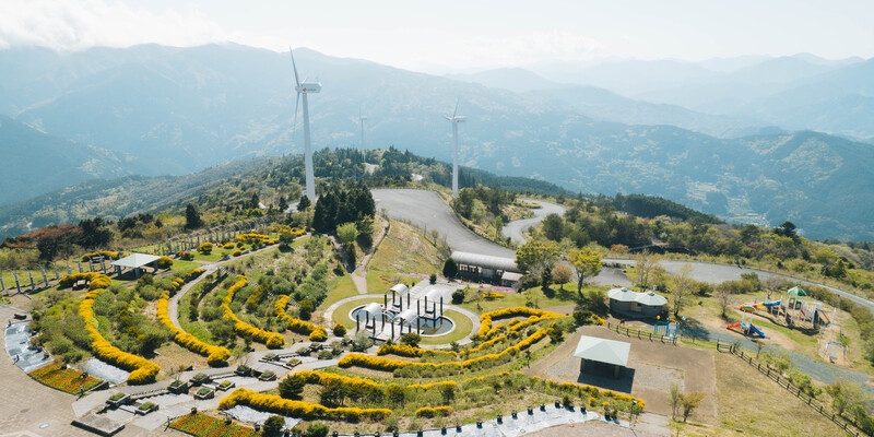 さわやかな風が吹き渡る標高750mの園内に、色とりどりの花や遊具、眺望、キャンプ場、コテージなどが満載! 友だちと、家族と、心ゆくまで楽しんでください。