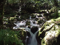 水源地および山頂付近は、大木が生い茂るわけでもありませんが、高地にもかかわらず年中湧き水はつきることがありません。下流の「龍王の滝」に流れ落ちる源流となっており「梶ヶ森の霊水」と呼ばれ、弘法大師が若年に修行したと言われる岩場や御影堂があり、弘法大師もこの水を利用したと伝えられています。夏は涼しく冬は温かく年中水温が一定に保たれ、大変貴重な水です。